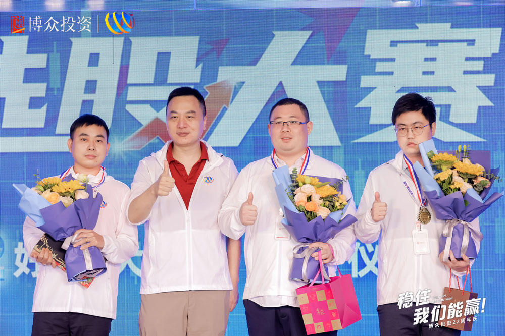下一項(xiàng)則是選股大賽頒獎儀式,首先頒發(fā)的是銅獎獲得者,他們是陳紅董、梁世昌、黃建強(qiáng)、容偉彪、宋文皓、韋蘭忠、程琪、明振友、鄒小翠,由易米的劉總為9為獲獎?wù)哌M(jìn)行頒獎以及合影留念。緊接著頒發(fā)銀牌獲獎?wù)撸麄兪牵宏悹N、陳威、張偉秋、勞志炳、謝俊。繼續(xù)由易米的劉總為4位獲獎?wù)哌M(jìn)行頒獎以及合影留念。