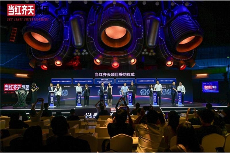 戰(zhàn)略發(fā)布會(huì)現(xiàn)場(chǎng),當(dāng)紅齊天集團(tuán)分別與揚(yáng)州泰州國(guó)際機(jī)場(chǎng)投資建設(shè)有限責(zé)任公司、牛首山文化旅游集團(tuán)、雙流空港興城集團(tuán)、湖州南潯文旅發(fā)展有限公司、大連旅順太陽(yáng)溝文化產(chǎn)業(yè)園區(qū)管理委員會(huì)、中建八局文旅博覽投資發(fā)展有限公司分別簽署項(xiàng)目合作協(xié)議。