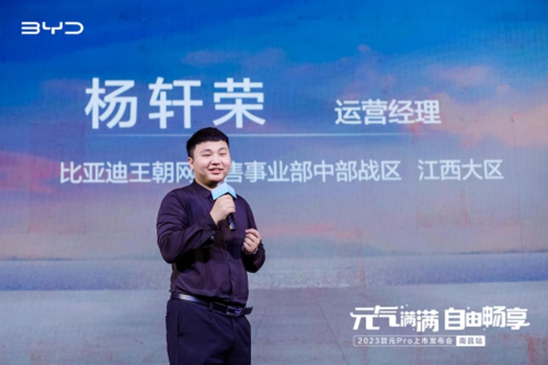 隨后,江西大區(qū)運營經(jīng)理解鎖新車亮點、公布價格及購車政策,讓現(xiàn)場所有嘉賓對2023款元Pro有了更深層的認識。比亞迪用實際行動踐行用技術創(chuàng)新,滿足人們對美好生活的向往。
