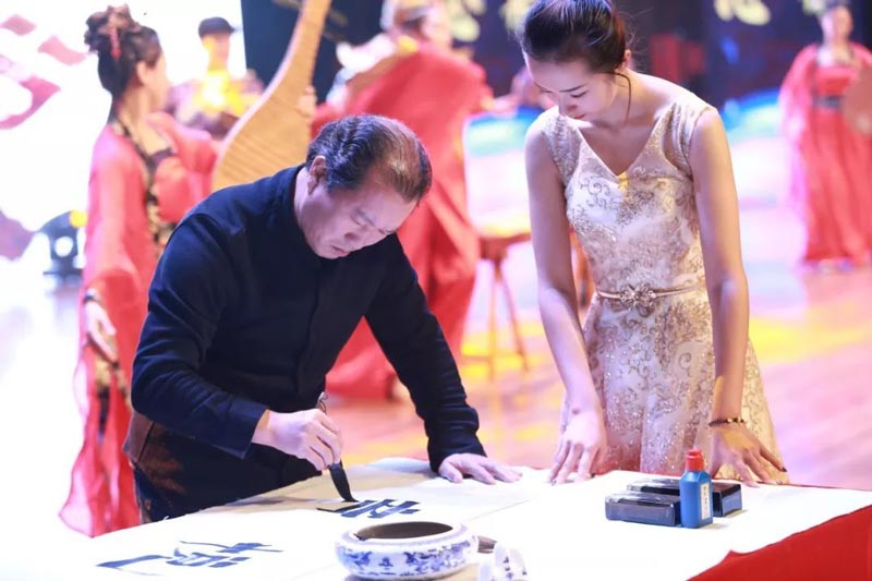 年會(huì)書法創(chuàng)作表演的時(shí)間一般控制在15-20分鐘。除了書寫文字之外,還要安排互動(dòng)內(nèi)容,通常是安排年會(huì)主持人與書法家對(duì)話,書法家講解書法作品內(nèi)涵并對(duì)公司及觀眾致以新年祝福。